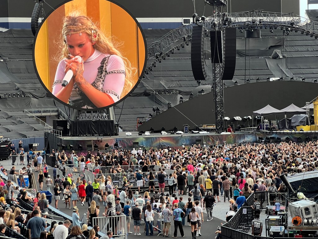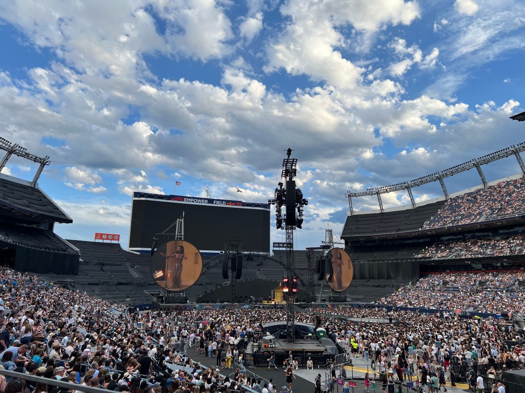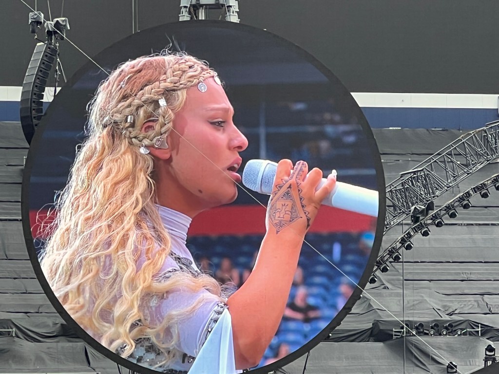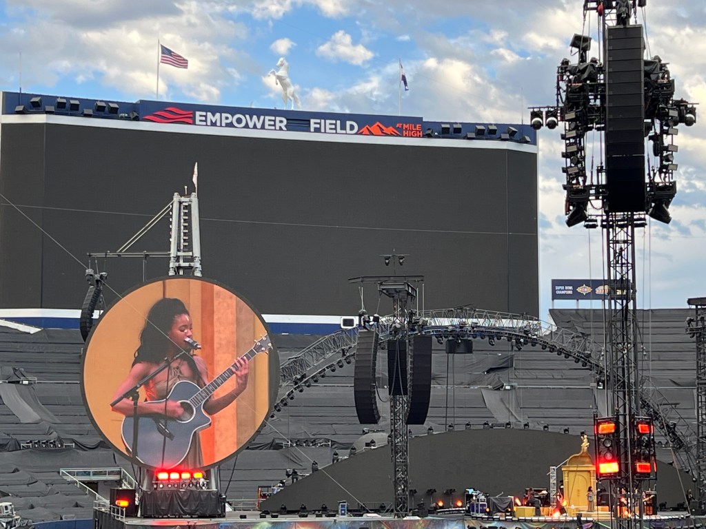 My companions (let’s call them “The Claw” and “Macy”) and I braved I-25 traffic – including one accident clean up – to arrive about an hour before the doors opened at 6 p.m. Plenty of time to grab a quick dinner (a burger for me and chicken tenders for my companions) and settle into our Section 118 seats before the two opening acts, Elyanna (a Palestinian-Chilean musician who sings on the album’s third track, “We Pray”) and WILLOW (whose hit single “Meet Me at Our Spot [Live]” with THE ANXIETY and Tyler Cole is so catchy that I played it on repeat for a week or two).