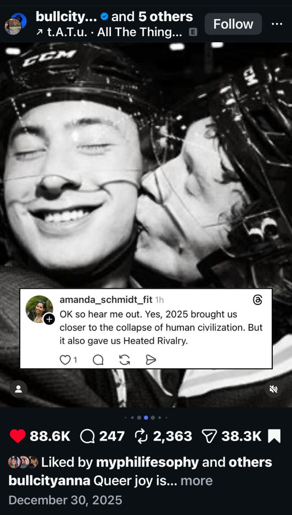 - “Queer sports romance ‘Heated Rivalry’ is redefining masculinity for Gen Z and Millenials” by @muchmuchspectrum