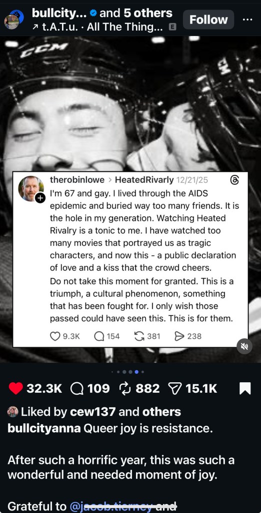 - “Heated Rivalry: a cultural awakening and a patriarchal reckoning: Why a show about gay hockey players is dominating the moment” by @sustainablesabs