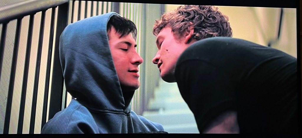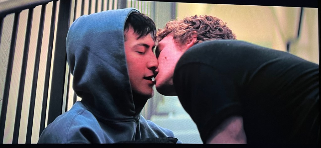 That video clip of people cheering at a sports bar during a pivotal moment at the end of Episode 5? <Heart eyes> New York team captain Scott Hunter, a few minutes after he and his team win The Stanley Cup, invites his secret boyfriend, Kip, down to the ice for a kiss and hug that serves as his coming out on international television to the tune of “I’ll Believe in Anything” by Wolf Parade.