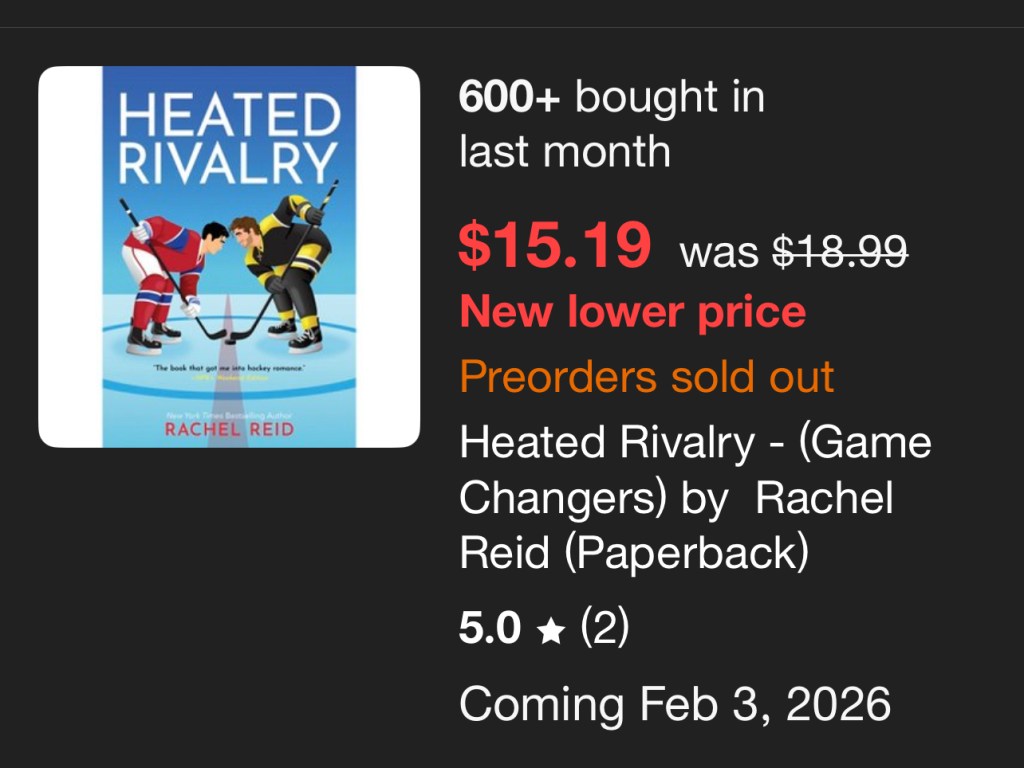 - Side note: Too bad the publisher of the Game Changers series didn’t have the foresight to release a TV tie-in edition, let alone additional printings. The paperbacks sold out immediately nearly everywhere after the TV series premiered, forcing fans, including this one, to buy the ebooks. (Hint: you can save money by purchasing Gamer Changers Volumes 1 and 2, which contain three ebooks each). Now Heated Rivalry is a New York Times best-seller and the publisher is playing catch up. Oops.